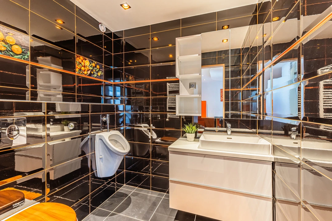 Ezen a szinten található a 27 négyzetméteres nappali, egy 14 négyzetméteres szoba, egy 10 négyzetméteres fürdőszoba és egy kis kamra. A belső lépcsőn feljutva az emeleten egy barátságos nappali fogad, amiből egy nagy zuhanyzós, WC-s fürdő nyílik, és két irányba egy 12-, illetve egy 19 négyzetméteres szoba található. Két nagyteljesítményű klíma, szabályozható radiátorok és beépített szekrények teszik még komfortosabbá a lakást. Az egész lépcsőház csendes, kulturált, szintenként mindössze két lakás található.