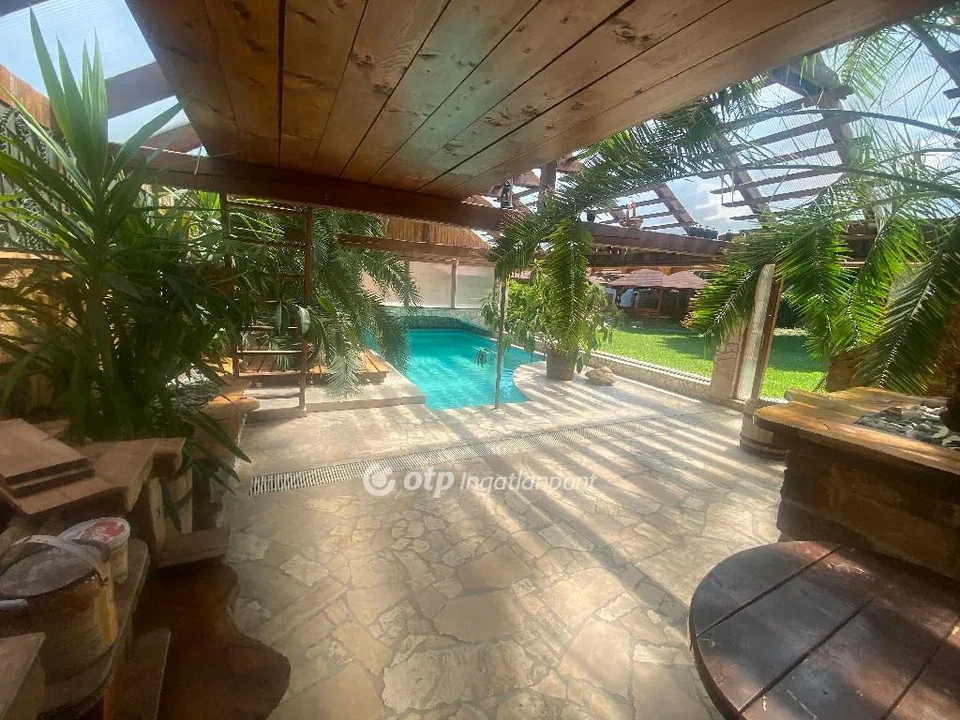Gyönyörűen ápolt kert tartozik az ingatlanhoz, a kinti kerti sütögető rész és a kerti pavilon pedig további kikapcsolódási lehetőségeket nyújt. Technikai érdekesség, hogy a napkollektor hálózat 90 százalékban kiépítve van, felár esetén pedig teljes felszerelésre kerül.
