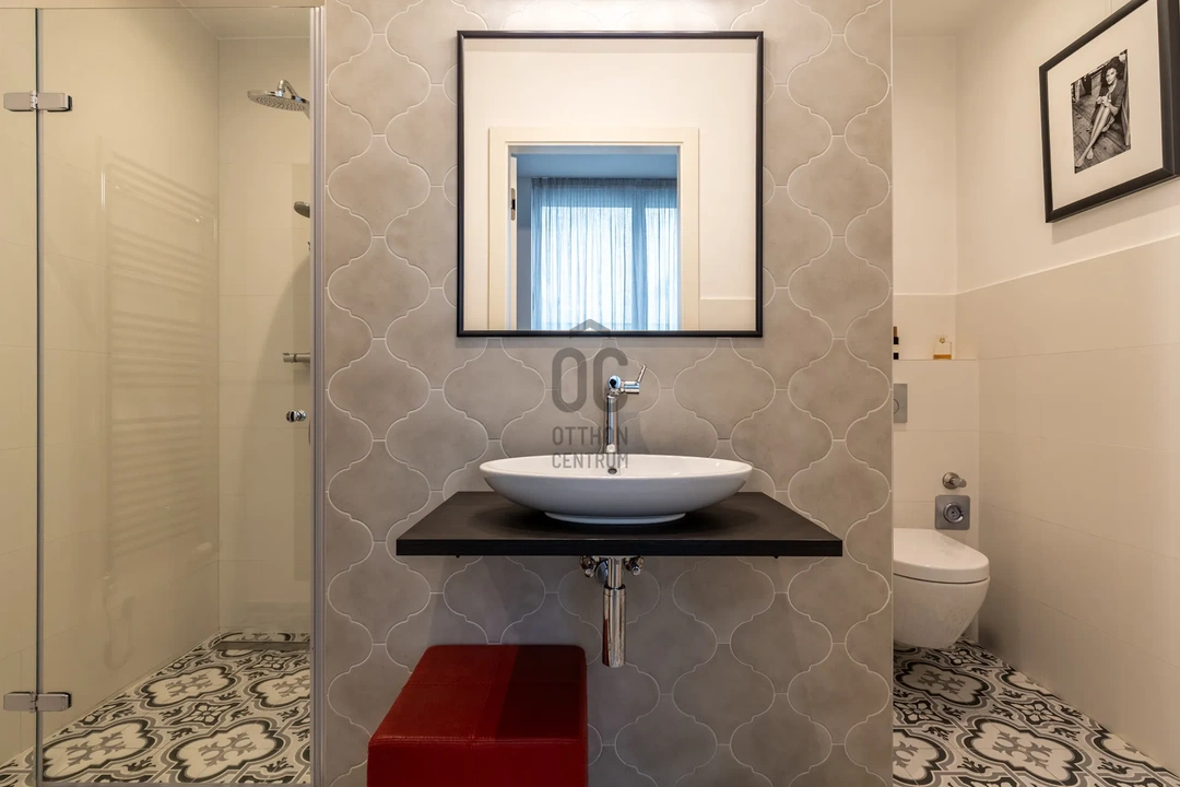 Ebben 102 négyzetméteres, kétszintes, fővárosi lakásban két fürdőszoba is van – mindkettőben gyönyörűen kialakított zuhanykabin található.
