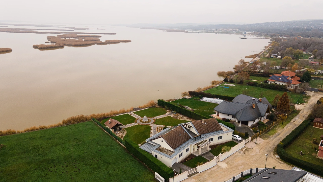 Egy szépséges birtokot hirdetnek a tó partján, 6+1 szobás házzal, geotermikus fűtéssel.