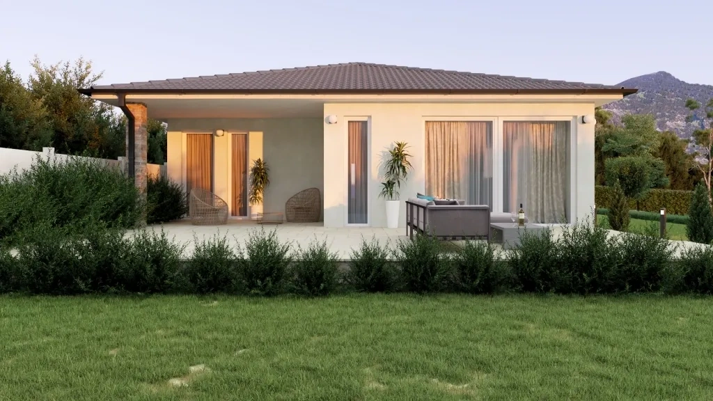 Az értékesítő cég saját tervezésű, 115 négyzetméteres lakóterületű családi házat is kínál a telekhez, MARTINA néven. Az alaprajz amerikai konyhás nappalit, három hálószobát, két fürdőszobát, kamrát és gardróbot tartalmaz. A kulcsrakész kivitelezés ára 91,8 millió forint + 5% áfa.