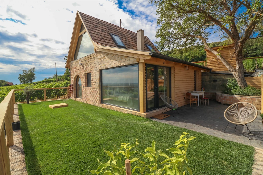 Egy igazi toszkán hangulatú menedék, Villány legszebb részén, a Szársomlyó-hegy lábánál vált eladóvá. A 95 négyzetméteres, teljes körűen felújított, kétszintes családi ház eredetileg egy présház volt, amit korábbi hangulatának megőrzésével alakították át modern, energiahatékony otthonná. Az alsó szinten egy tágas, amerikai konyhás nappali, egy hálószoba és egy nívós fürdőszoba kapott helyet, innen nyílik a 60 négyzetméteres terasz, ahonnan elragadó kilátás nyílik a környező dombokra és szőlősorokra.