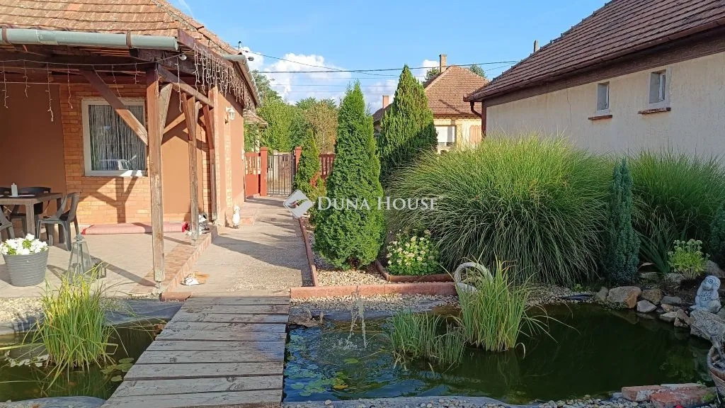 Jelenleg 2 szoba áll rendelkezésre, de az előszobából könnyedén kialakítható még egy fél szoba. A ház mellett egy tágas fedett terasz található. A kertben 2 állásos garázs, tároló, kemence, kerti kiülő és kerti tó is található. A kamerarendszerrel felszerelt ház udvarára elektromos nagykapun lehet bejutni.