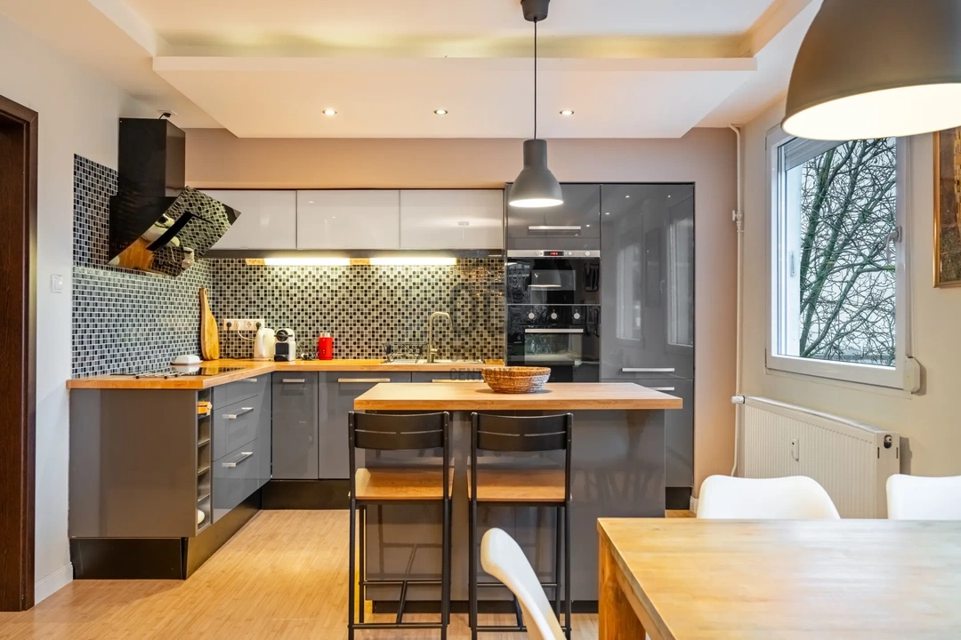 Ha a csúsztatott zsalus lakás a praktikus elegancia, akkor ez a 140 négyzetméteres, 2009-ben épült téglalakás inkább a kényelemről szól. A Mátyáshegy és Pálvölgy határán épült ötlakásos társasház legfelső szintjén található, belső kétszintes, 5 szobás lakás erdőszéli, rendkívül csendes környezetben található, de innen a belváros mindössze 15 perc alatt elérhető.
