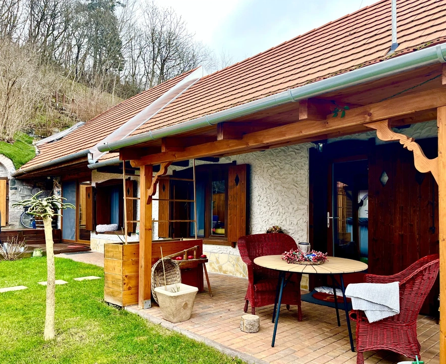 Gerendás mennyezettel, belső átriumos exkluzívan felújított 3 szobás 110 négyzetméteres parasztház vált eladóvá, melynek pihenőteraszáról csodás panoráma nyílik a Dunára. A rendezett kert szépen füvesített és automata, föld alatt futó öntözőrendszerrel rendelkezik. A belső terek melegét csempés kandalló és padlófűtés biztosítja, de hűtő-fűtő klíma is be lett szerelve.