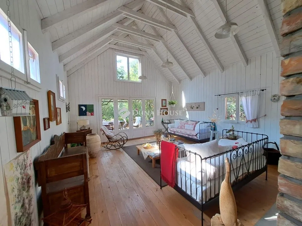 A ház gyöngyszeme kétségkívül a hátsó pajta, amely teljesen újjáépítettek és immár szigetelt formában alakult a jelenlegi nappalivá. Innen nyílik közvetlen terasz kapcsolat a hortenziákkal körbevett, gyümölcsfákkal beültetett kertre.