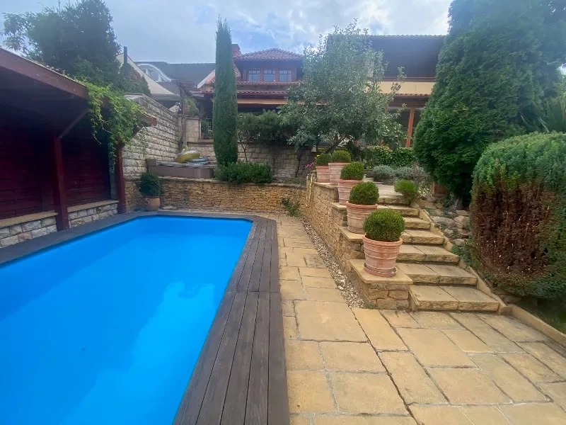 A földszinthez jár a teljes kert medencével, jacuzzival, grillkonyhával