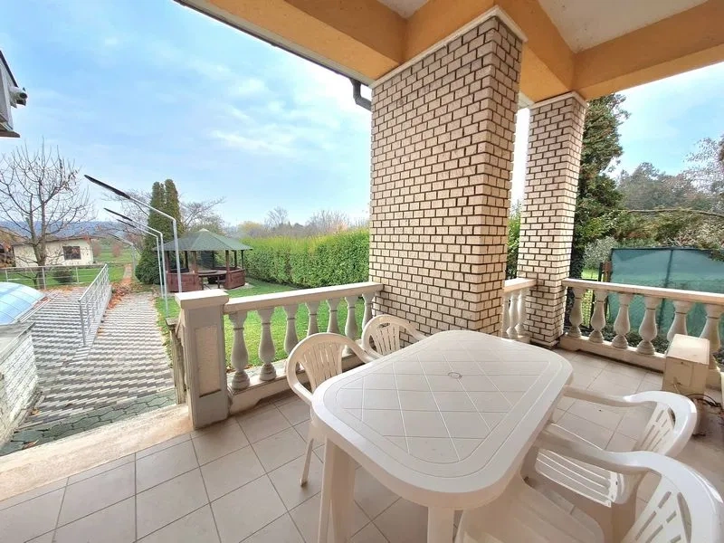 Érd Ófalu csendes, családi házas övezetében, aszfaltozott mellékutcában 2361 négyzetméteres összközműves, parkosított telken kínálják ezt a nappali, 4 szobás, 2 autó beállásos garázs, dupla komfortos, összesen 200 négyzetméteres folyamatosan karbantartott önálló családi házat számos extrával. A fa szerkezetű nyílászárók, 2 rétegű szigetelt üvegezéssel, mindenhol elektromos redőnnyel és szúnyoghálóval lettek ellátva. Minden helyiségben padlófűtés, plusz a szobákban radiátoros hő leadók is felszerelésre kerültek. Az épületben minden helyiség klímaberendezéssel felszerelt. A parkosított kertben automata öntözőrendszer került kiépítésre. A vételár tartalmazza a beépített konyhabútor gépekkel. Az ingatlanban 6 személyes finn szauna és fedett kültéri medence gépészettel szolgálja a lakók regenerálódását.