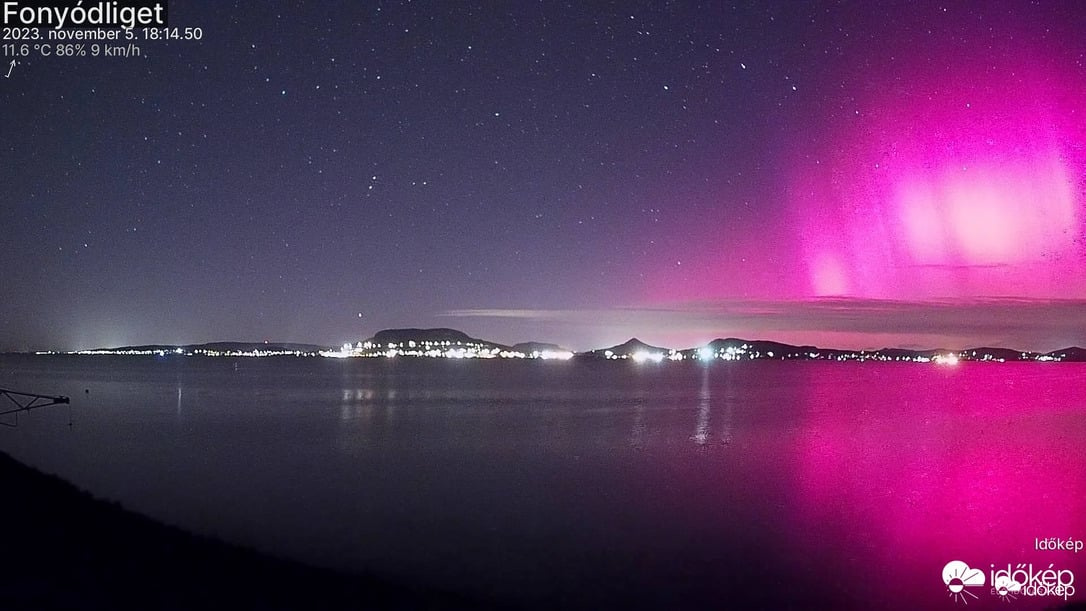 "Webkameráink pedig szó szerint kiégtek a fellobbanó rózsaszín fénytől". Az MTI például Nagykanizsa környékén fotózta a fenti képet.