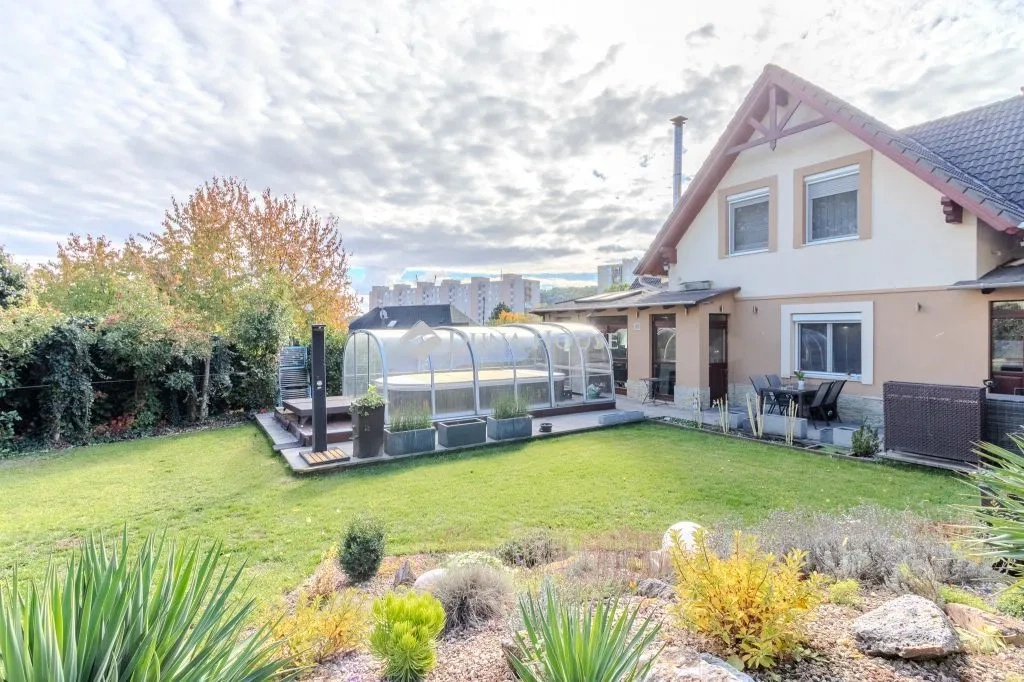 Miskolcon, a Futó utcában hirdetik ezt az elragadó házat. Praktikusan egy 2285 négyzetméteres telken négy különálló lakóegység található, összesen 670 négyzetméteren. A tágas terek, privát medence, több hálószoba és fürdőszoba, valamint a különálló apartmanok lehetővé teszik, hogy panzióként, irodaként vagy akár többgenerációs otthonként is funkcionáljon.