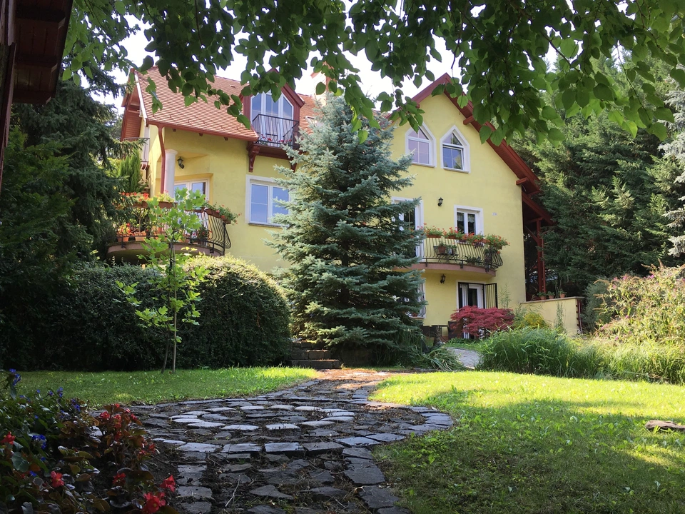 Ami külön emeli az ingatlan értékét az a kert, amiről muszáj még egy pár szót ejteni. Nagyra nőtt növényzet, fenyőfák, tuják és lombhullató növények veszik körül a házat, ami négy szinten helyezkedik el a hegyoldalban. A kertben található két kerti tó, hangulatvilágítással, szökőkúttal, díszhalakkal, továbbá kerti patak, grillezőhely és sokféle értékes növény, amelyek színeikkel változatos hangulatot adnak a különböző évszakokban. Napos és árnyas helyek váltják egymás.