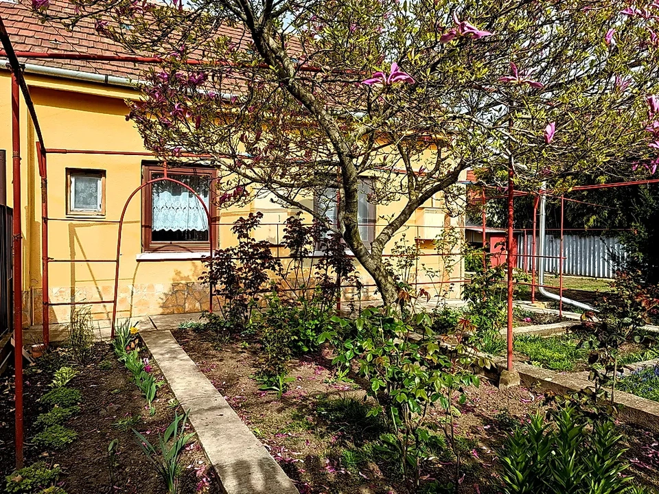 A kert virágos előkerttel és örökzöldekkel van körülvéve. Kiváló infrastruktúra és tömegközlekedés jellemzi a környéket, a cinkotai HÉV megálló gyalog 5 perc alatt elérhető.
