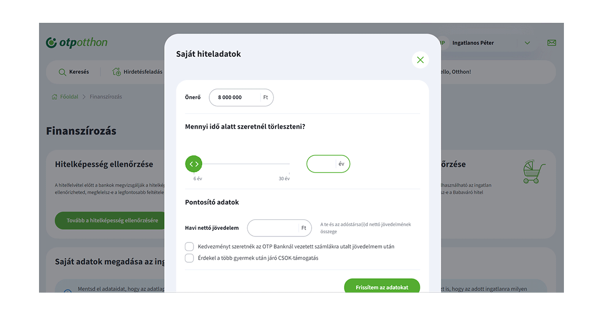 A hitelkalkuláció beállítása során ellenőrizheted hitelképességed, Babaváró és CSOK jogosultságod.