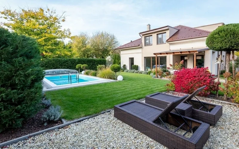 Tovább emeli a kert vonzerejét a 3*6 méteres kültéri medence, ahol felfrissítheted magad a forró napokon. Ha pedig az időjárás még vagy már nem teszi ezt lehetővé, akkor a fedett teraszról élvezheted a szemet gyönyörködtető látványt.