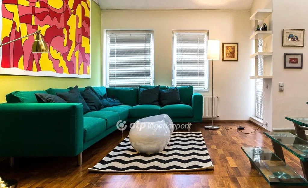 Az egész lakás belsőépítészeti kialakítása is különleges, észrevehető a profi szakember keze munkája. A színes, modern felületek és az eklektikus miliő elsősorban fiatalokat szólíthat meg vagy olyan befektetőt, aki kiadásra szánja az ingatlant.