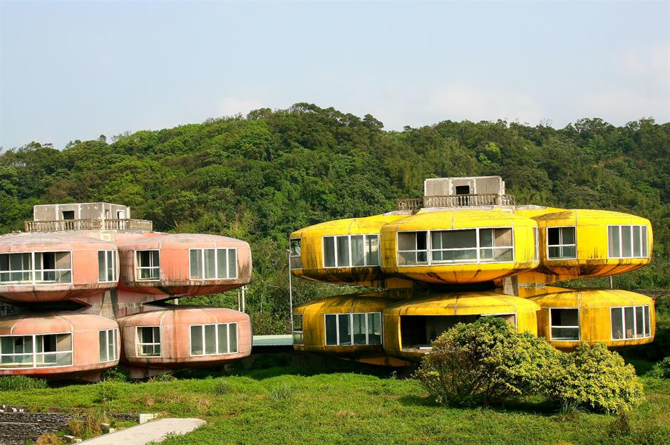 Tajvanban valaki nagyon szerette a repülő csészealjakat, úgyhogy ezek most itt boldog emberek otthonai is lehetnének Új-Tajpejben. Azért csak lehetnének, mert teljesen végül soha nem készültek el. Megdöbbentő módon nem az ízlésrendőrség lépett közbe, egyszerűen csődbe ment a kivitelező.