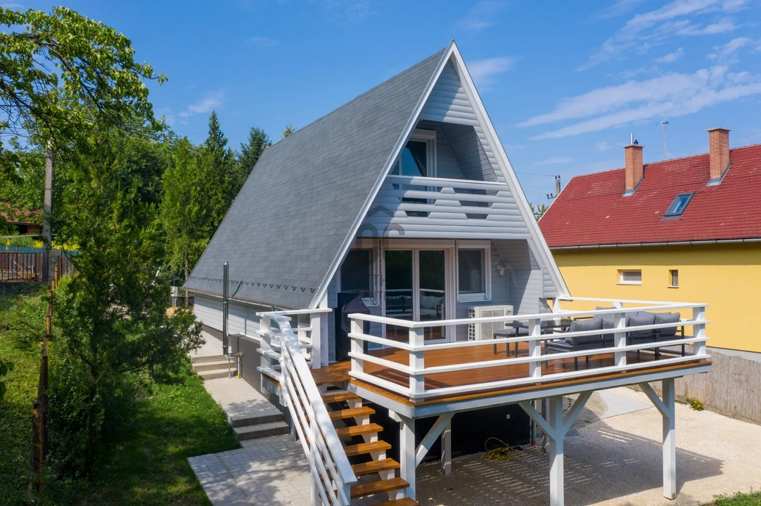 A kedvenc alpesi tetős nyaraló, amiből egy luxusházat épített a tulajdonosa Tahitótfalu egyik csendes, hangulatos utcájában. Az 547 négyzetméteres, lépcsőzetes telken álló háromszintes, összesen 102 négyzteméteres otthon minden szintről más-más nézőpontból engedi élvezni a természet közelségét és a panorámát.