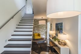 A nagy üvegteraszos, 154 négyzetméteres ház pinceszintjén autóbeálló lesz, fent, a lakótérben a 31 négyzetméteres nappali mellett a konyha, két háló, két fürdőszoba és WC, valamint kamra kap helyett és egy liftakna. A ház egyetlen problémás pontja, hogy viszonylag nehéz megközelíteni.