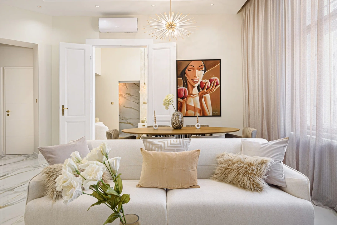 Ha sikerül foteleket, kanapét, vagy akár ülőgarnitúrát beszerezned, terítsd le őket gumis huzattal. Az ugyanolyan színű és anyagú borítás miatt teljes lesz az egység a különböző bútorok között. A karosszékeket akár átfestheted, de hagyhatod is úgy, ahogy vannak. Esetleg az ülőpárnák lehetnek azonosak.