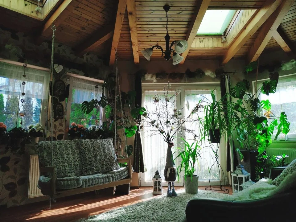 A helyiségek hajópadlóval burkoltak. A könnyűszerkezetes házhoz 30 négyzetméteres terasz is tartozik. A csodálatos udvaron japán és trópusi kertet is kialakítottak, banán- és pálmaligetttel. Automata öntözőrendszer gondoskodik a vízellátásról.