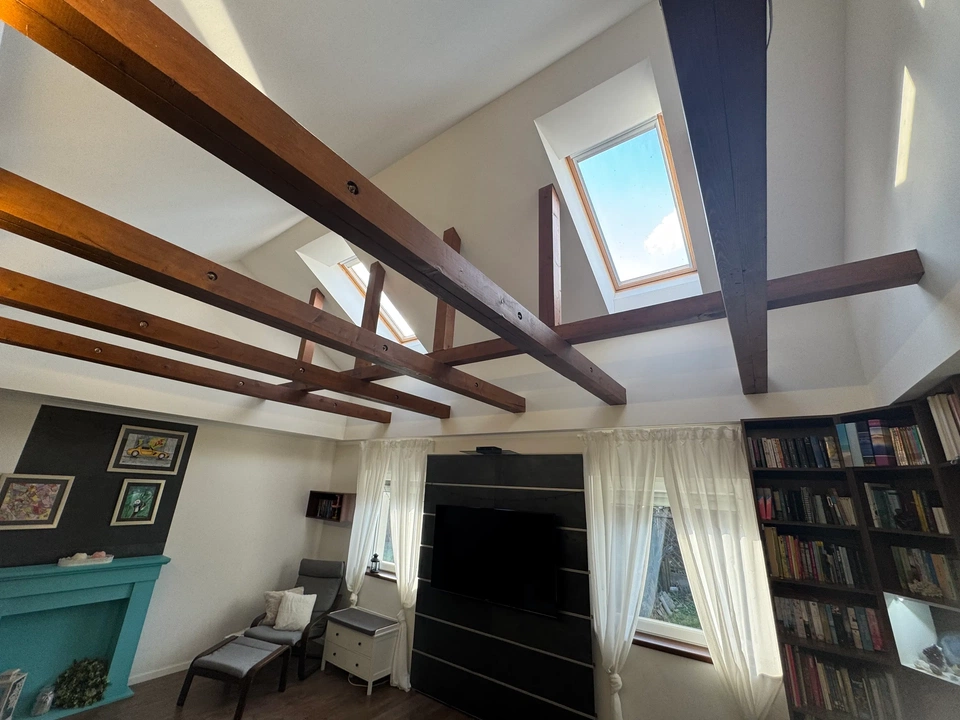 Az ingatlant tágas terek jellemzik, beleértve nagy nappalit, két hálószobát, gardróbszobát és különálló fürdőt zuhannyal és káddal. A lakás variálható elrendezése, valamint a padlástér beépítési lehetősége további bővítést tesz lehetővé. A környék csendes, közel a Duna-part, iskolák, boltok, sportlétesítmények és bevásárlóközpontok is könnyen elérhetők.
