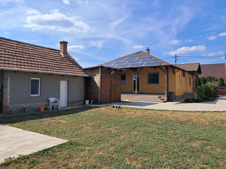 Ez a 2020-ban épült, energiatakarékos, napelemes családi ház egy 1200 négyzetméteres rendezett telken található, és könnyűszerkezetes technológiával készült. A 115 négyzetméteres házban amerikai konyha, nappali, két szoba és egy 30 négyzetméteres fedett terasz található, a telken garázs és melléképület áll. A ház hőszivattyús, padlófűtéses, de gáz cirkó is üzembe helyezhető. Két hűtő-fűtő klíma biztosítja a kellemes hőmérsékletet nyáron.