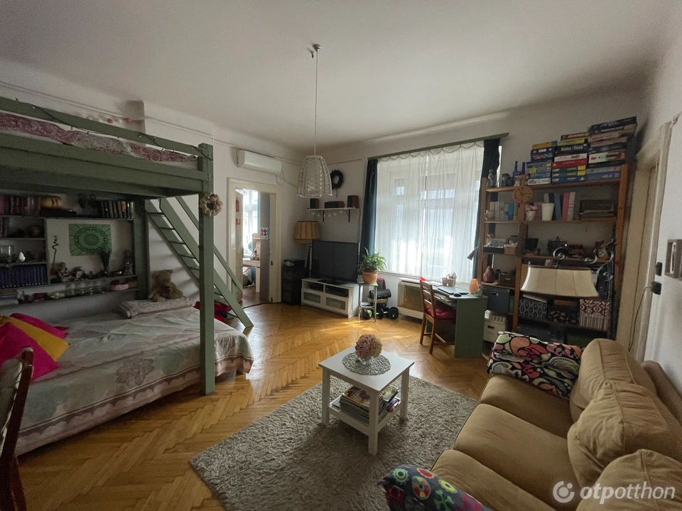 A déli fekvés miatt garantált a folyamatos napsütés – ezt a redőnnyel ellensúlyozhatod. Akad egy kis kamra, kádas fürdőszoba, külön mosdó. A lakás báját nem a nagyszerű elrendezés adja, vagy a hibátlan berendezés, hanem a története, amit veled folytathat.