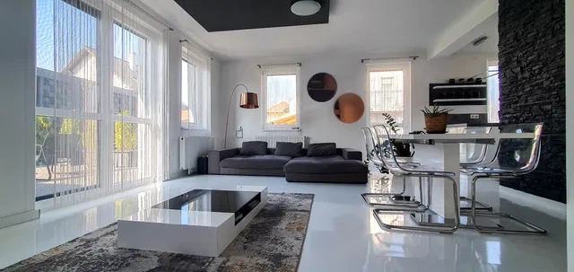 Ki gondolná, hogy az ódon épületek öntöttvas kopogtatós kapuinak egyike mögött egy ilyen kétszintes, bájos, vintage lakás bújik meg?! Az új építésű, liftes társasház második emeletén lévő lakás alsó szintjén amerikai konyhás-nappalit, onnan pedig a lépcsőn elérhető tetőtérben további négy hálószobát alakítottak ki, amelyeket a déli tájolás miatt a Nap egész nap természetes fénnyel világít meg. A hálókból kettőhöz egy erkély is tartozik, továbbá a hatalmas területen még egy gardróbot és egy zuhanyzós kádas fürdőszobát is kialakítottak.
