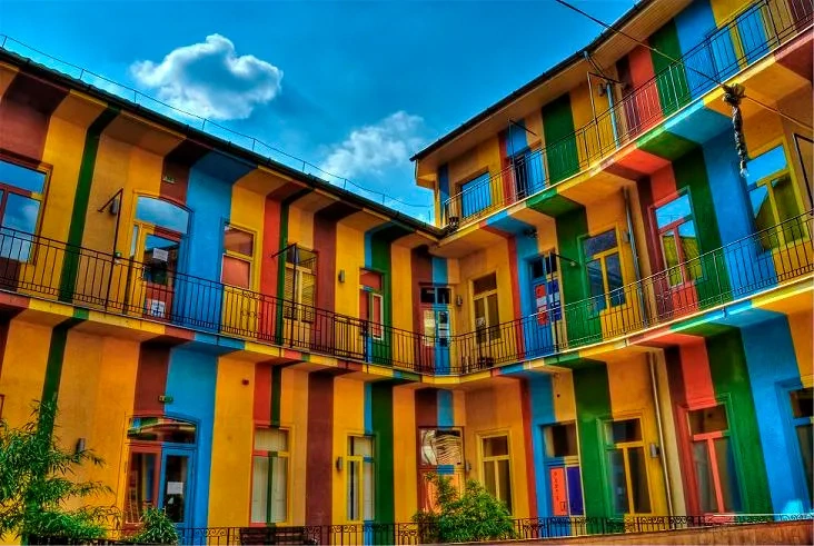 Első ránézésre talán el se hinnéd, hogy ez a csupaszín gangos épület Budapest Palotanegyedében található. A hivalkodó megjelenésére magyarázat lehet, hogy sokáig hostelként működött. Most az új tulajdonosára vár, aki fantáziát lát benne. A műszakilag és egyéb szempontokból felújított ingatlan kirí a klasszikus belvárosi környezetből.