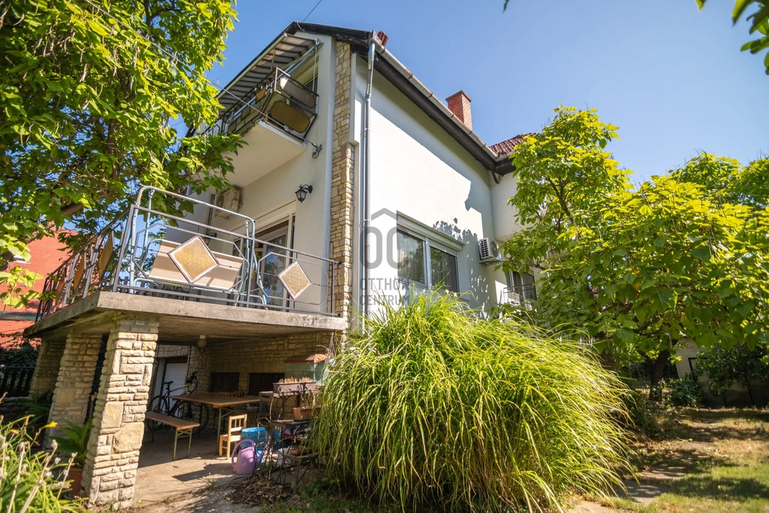 Ez a téglaépítésű családi ház három különálló lakrésszel rendelkezik, így több generáció is kényelmesen elférhet benne. A kilencvenes években befejezett tetőtér jól illeszkedik a házhoz, a terek világosak, barátságosak. A kertben található melléképület jelenleg műhelyként szolgál, de igény szerint lakótérré alakítható.