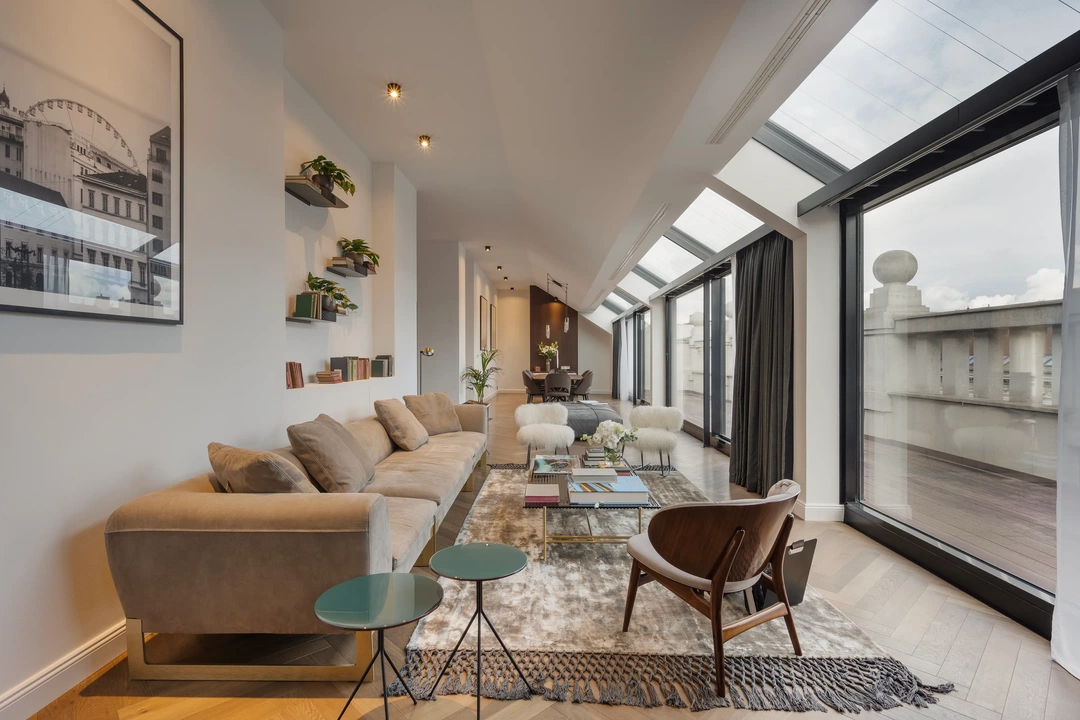 Budapest V. kerületében eladó egy 157 négyzetméteres tetőtéri luxus lakás. Az épületben 24 órás portaszolgálat szolgálja a kényelmet, amely recepciós feladatokat is ellát.