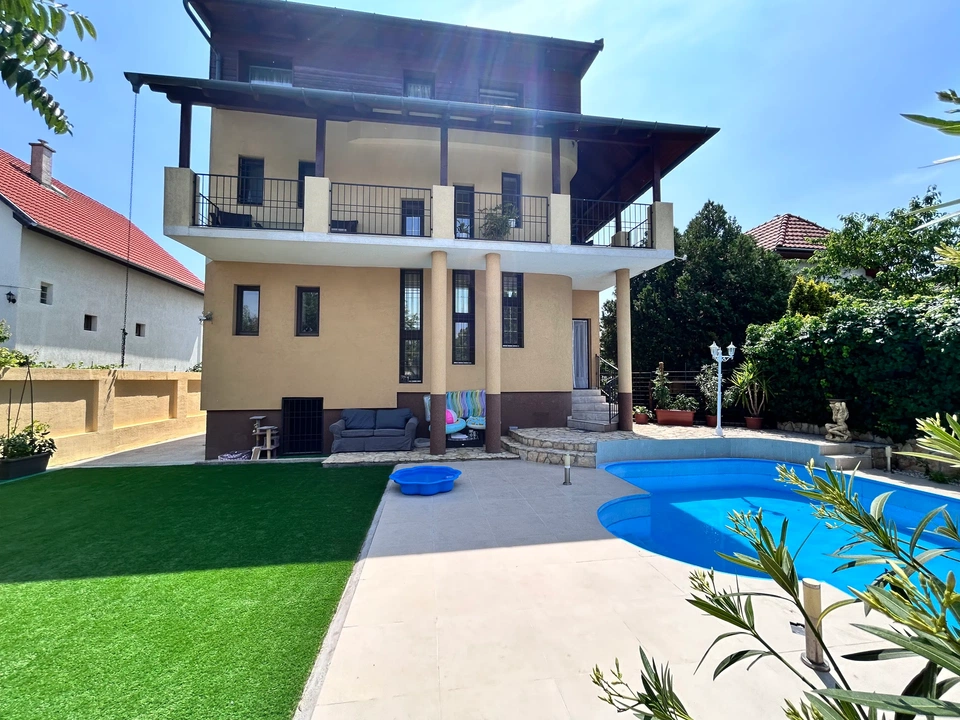 Ez a 230 négyzetméteres, ürömhegyi illetőségű családi ház – 905 négyzetméteres telekkel –, szintén népesebb család otthonává is válhat, ráadásul úgy, hogy a generációk kényelmesen szeparálódhatnak, mivel két különálló lakrésszel rendelkezik az ingatlan. 1990-ben épült, de 2022-ben lett felújítva, és azóta is folyamatosan karban van tartva. A csendes utcának köszönhetően teljes nyugalom várja az új tulajdonost.