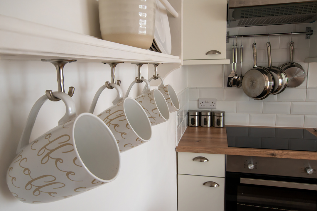 Ha nem zavar, hogy szem előtt vannak a kisebb edények, nyugodtan tedd fel őket egy kampóra. Könnyen hozzájuk férhetsz és a kampókkal ellátott rúd még jól is mutat a konyhasziget fölött, vagy szerelj fel egy akasztós szervezőt a tűzhely mögötti falra.