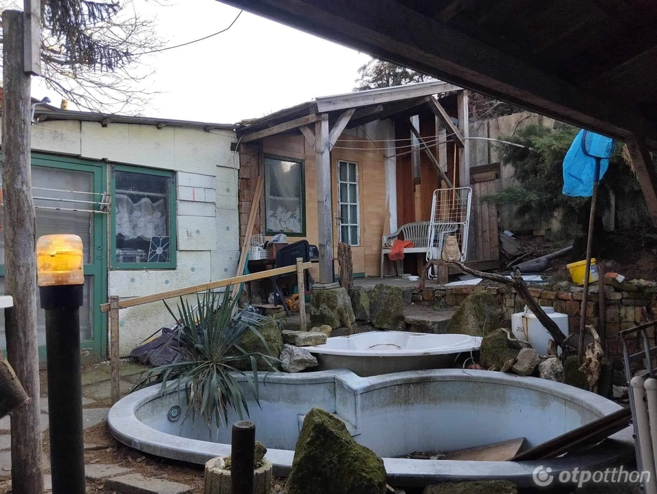 A zuhanyzós, villanybojleres fürdőszoba jelenleg a főépület mellett egy külön kis épületben kapott helyet. A két épület kis ráfordítással összenyitható, a konyha ebben az épületrészben kialakítható. A nyílászárókat részben már cserélték, összközműves, a gázcsonk is telken belül található, jelenleg a fűtés elektromos berendezéssel történik.