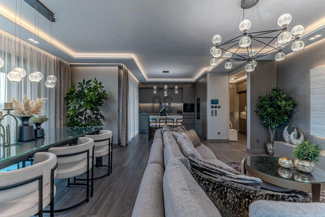 Elegáns ház eladó a II. kerületben, ahol gyönyörű parketta borítja a tágas nappalit.