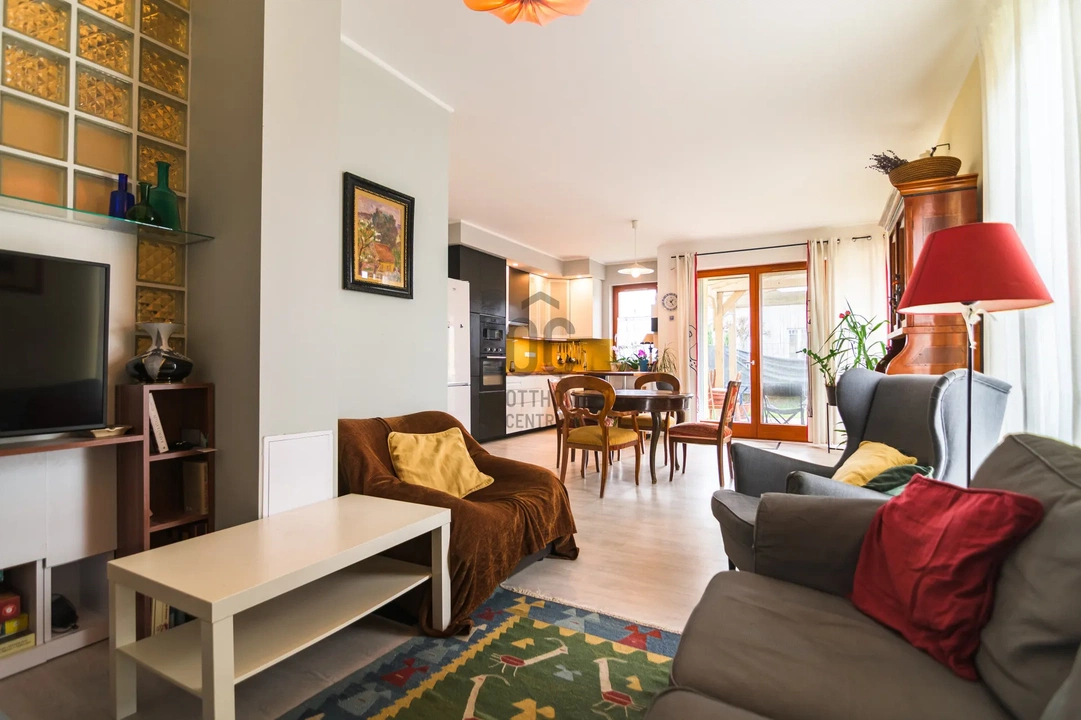 A házban 4 szoba áll rendelkezésre, egyedi tervezésű konyhával, két fürdőszobával, hatalmas gardróbszobával és a téliesíthető fedett terasszal. Az ingatlanhoz 400 négyzetméteres udvar tartozik, szépen letérkövezve, ahol 4 garázst és egy műhelyet is kialakítottak. A kertet fúrt kútról működő csepegtetőrendszer gondozza.