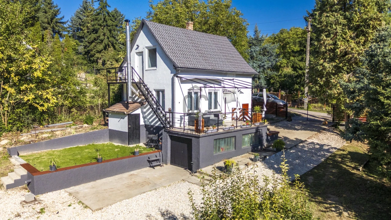 A Pecató közelében ez a 803 négyzetméteres telken álló 70 négyzetméteres, ház került eladósorba. A kert végében ősfás erdő és gyümölcsfák biztosítják a természet közelségét, míg a ház alatti szuterén garázs, tároló vagy akár műhely kialakítására is alkalmas. A földszinten két szoba, konyha, étkező és fürdő, az emeleten további szobák, fürdő és erkély, amelyet belülről és kívülről is megközelíthetünk.