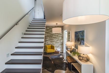 A sárga klinkertégla rusztikus felülete és a bejárat melletti mélylila levendulabokor találkozása erős mediterrán jelleget kölcsönöz ennek a Pilis és a Vért-hegy lábánál épült ingatlannak. Piliscsaba panorámás lakóparkjának épületei jól idomulnak a domborzathoz, elkerülve ezzel az agglomerációs építkezések tipikus hibáit. A környezettel való harmónia Budapesttől alig 25 kilométerre városszintű kényelmet ad hegyvidéki miliőben.